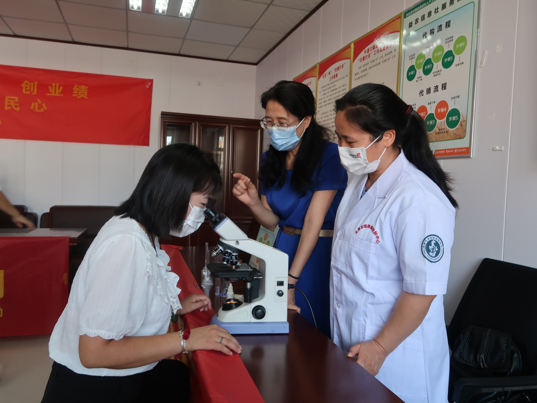 门诊张玉华主任和秦莉医生热情地为当地居民问诊、听诊,测量血压,向群众讲解了结核病以及高血压的早期症状,同时耐心细致地为前来询问的群众答疑解惑,详细地提供保健指导。团员们开展健康知识相关的宣传教育,宣传当前疫情防控知识和卫生健康知识,发放教育宣传折页,当地村民倍感温馨。王春花主任则是带去了参比室的小法宝——显微镜,并为每位村民调整好视野,让大家可以清晰的看到结核菌长什么样,吸引了大量村民踊跃参与。
