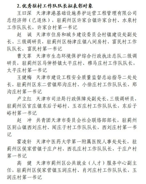 蓟州区推荐天津市扶持经济薄弱村发展和乡村振兴示范村创建工作先进集体及先进个人拟表彰对象的公示 作者: admin 发布: 2025-04-08 1,301阅读 0评论 本文来自网络,不代表天津乡村振兴网立场,转载请注明出处:http://www.tjxczx.cn/archives/4305
